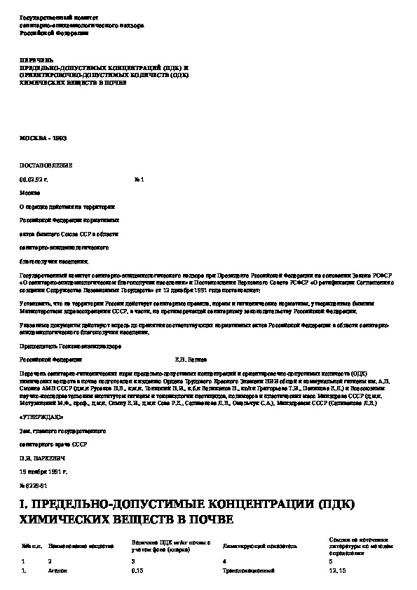 Наша цель состоит в том, чтобы предоставить вам быстрый доступ к содержанию документа Перечень предельно-допустимых концентраций (ПДК) и ориентировочно-допустимых количеств (ОДК) химических веществ в почве.