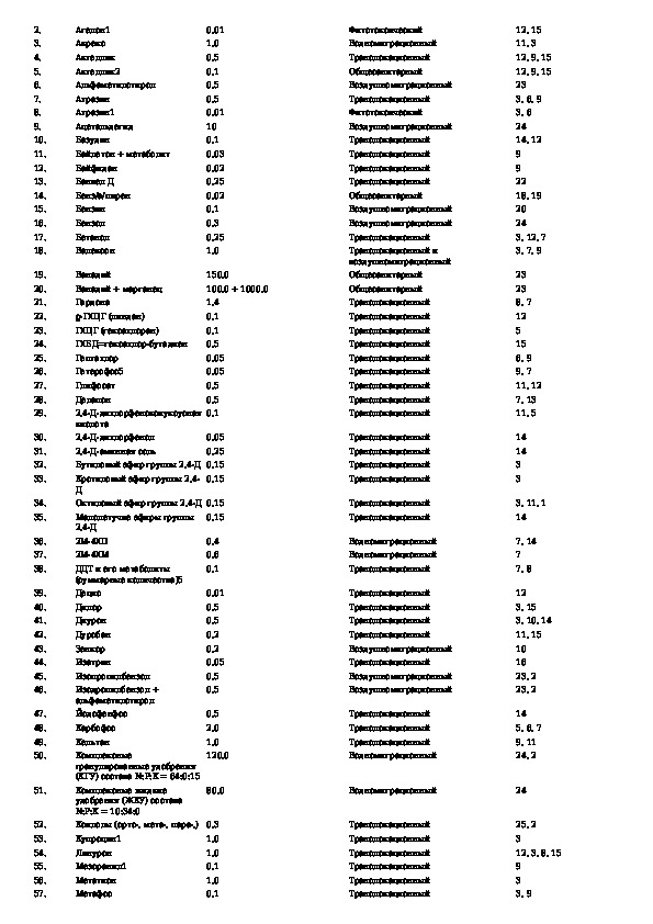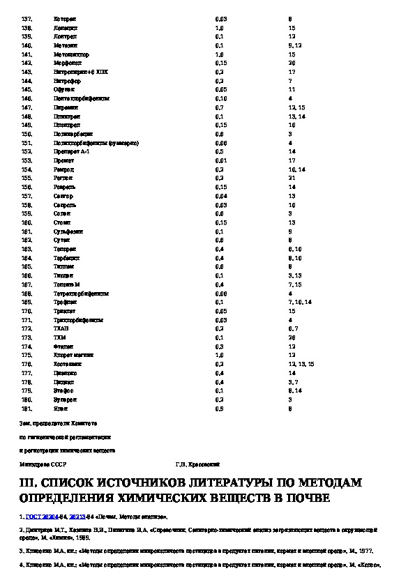 Перечень предельно-допустимых концентраций (ПДК) и ориентировочно-допустимых количеств (ОДК) химических веществ в почве
