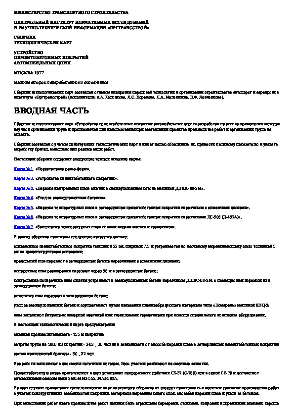 Наша цель состоит в том, чтобы предоставить вам быстрый доступ к содержанию документа Сборник технологических карт. Устройство цементобетонных покрытий автомобильных дорог.