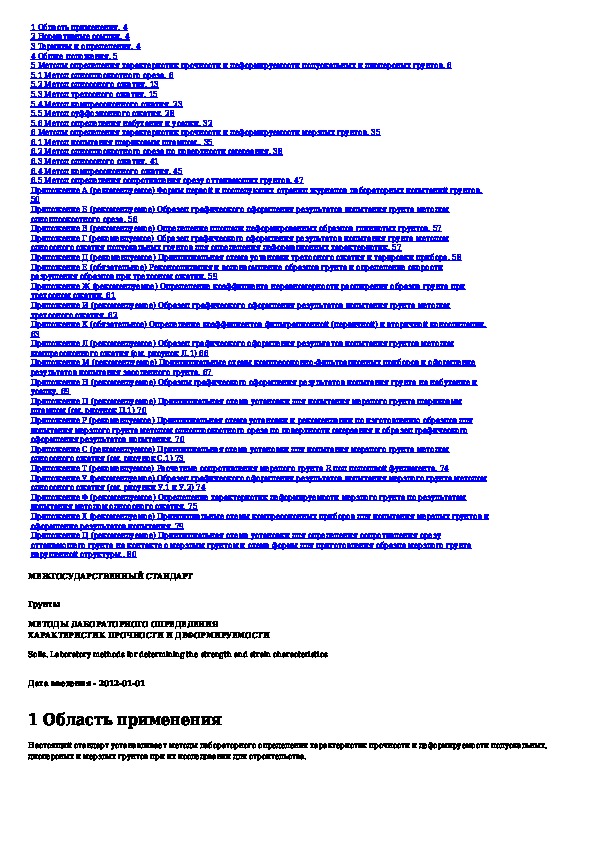 Наша цель состоит в том, чтобы предоставить вам быстрый доступ к содержанию документа Грунты. Методы лабораторного определения характеристик прочности и деформируемости.