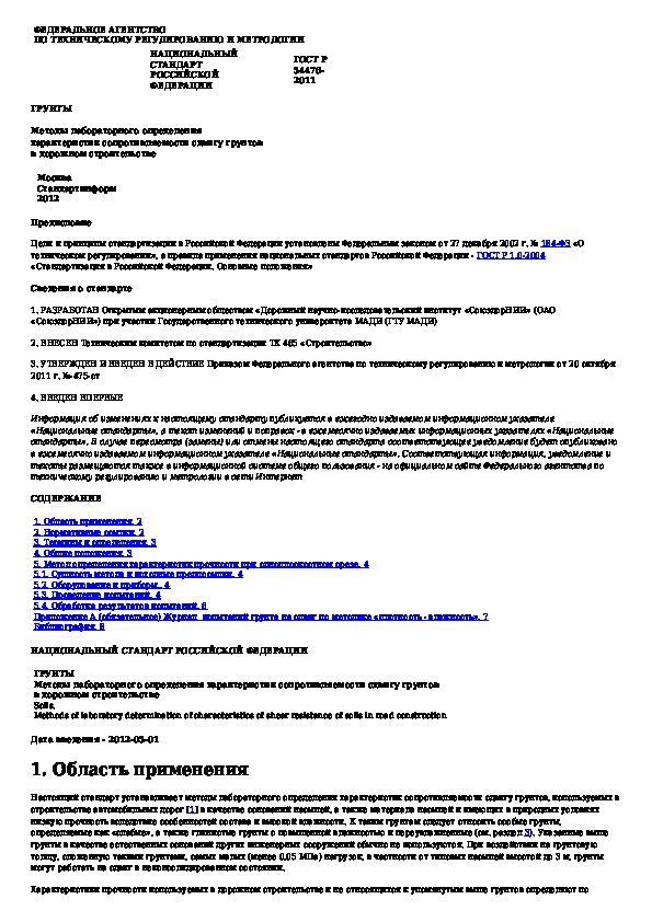 Наша цель состоит в том, чтобы предоставить вам быстрый доступ к содержанию документа Грунты. Методы лабораторного определения характеристик сопротивляемости сдвигу грунтов в дорожном строительстве.