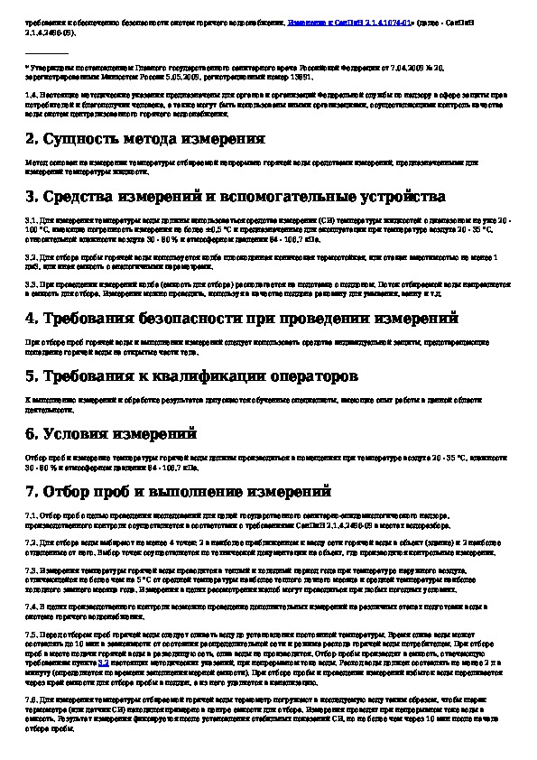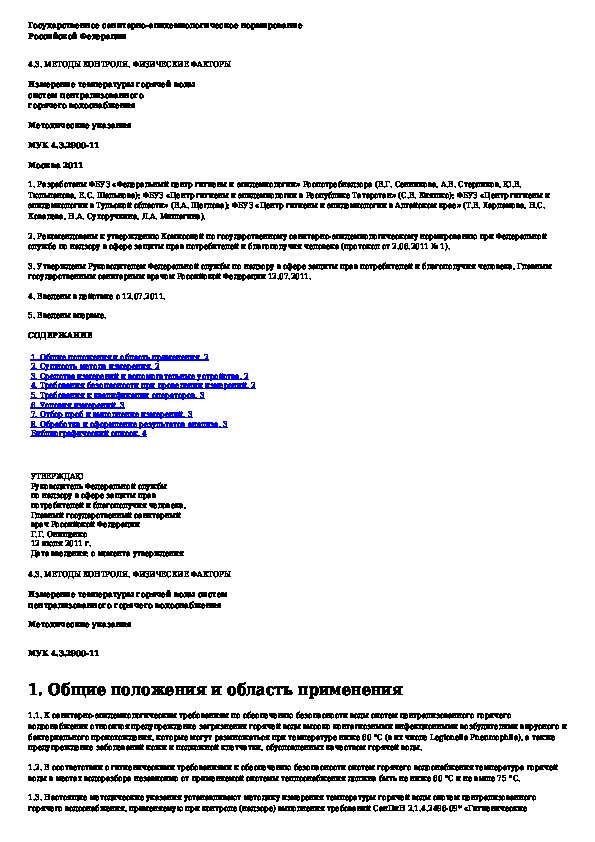 МУК 4.3.2900-11: Измерение температуры горячей воды систем централизованного горячего водоснабжения