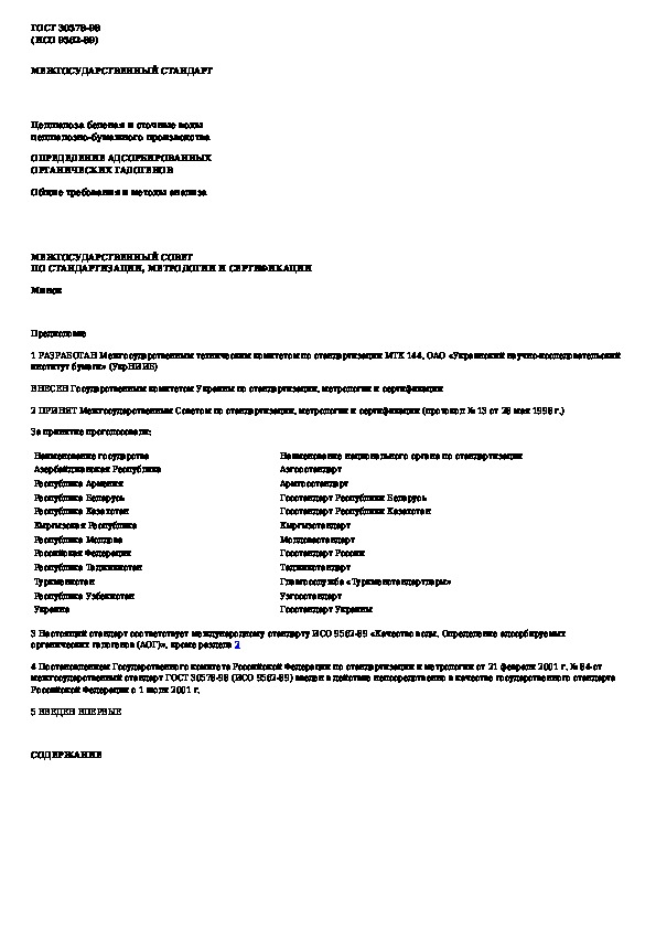 Наша цель состоит в том, чтобы предоставить вам быстрый доступ к содержанию документа Целлюлоза беленая и сточные воды целлюлозно-бумажного производства. Определение адсорбированных органических галогенов. Общие т.