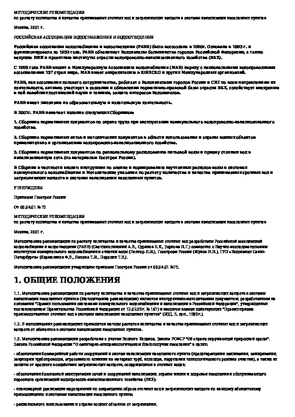 Наша цель состоит в том, чтобы предоставить вам быстрый доступ к содержанию документа Методические рекомендации по расчету количества и качества принимаемых сточных вод и загрязняющих веществ в системы канализации .