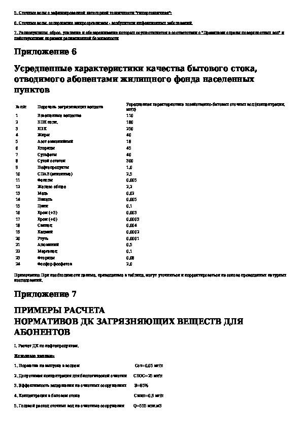 Методические рекомендации по расчету количества и качества принимаемых сточных вод и загрязняющих веществ в системы канализации