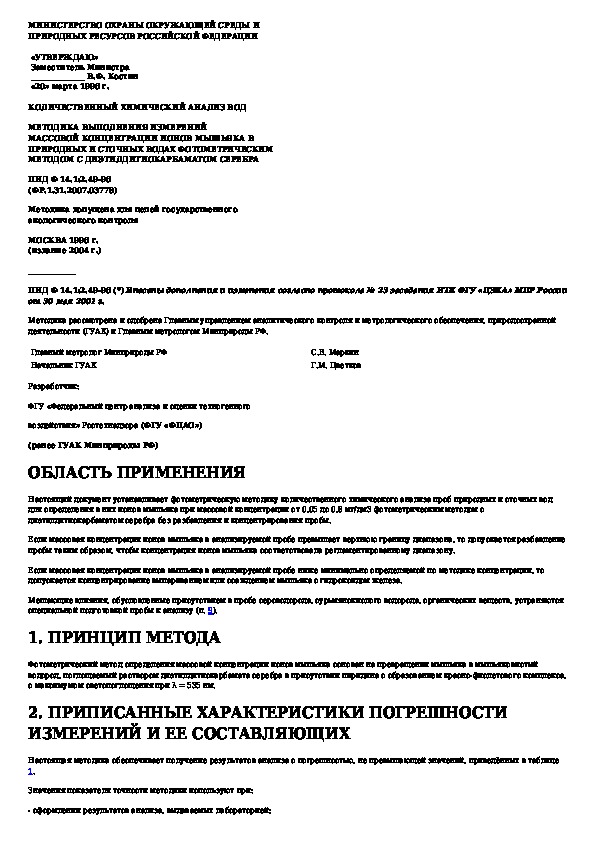 Наша цель состоит в том, чтобы предоставить вам быстрый доступ к содержанию документа Количественный химический анализ вод. Методика выполнения измерений массовой концентрации ионов мышьяка в природных и сточных во.