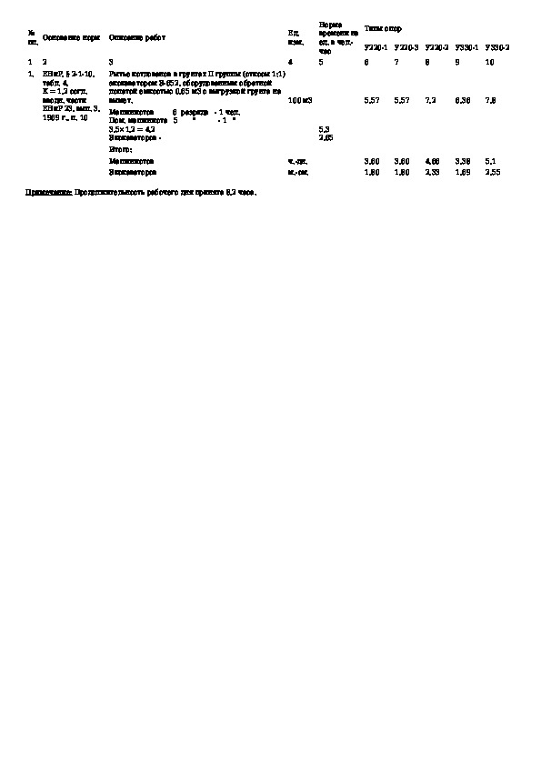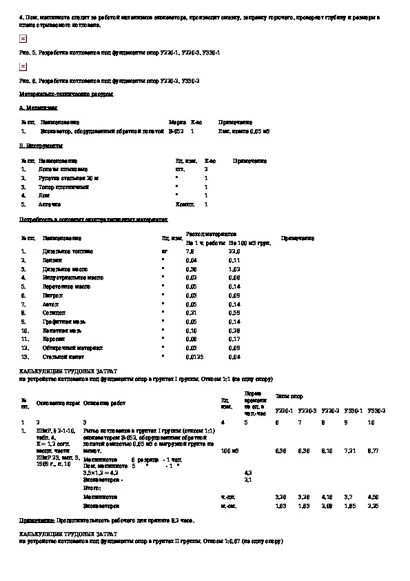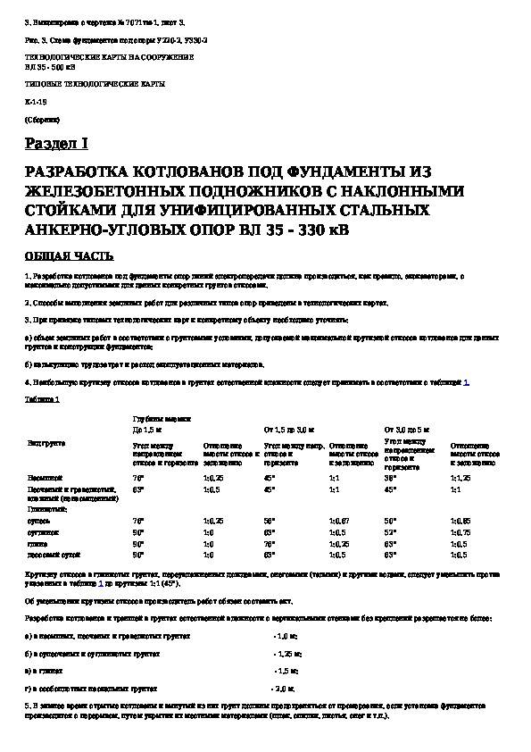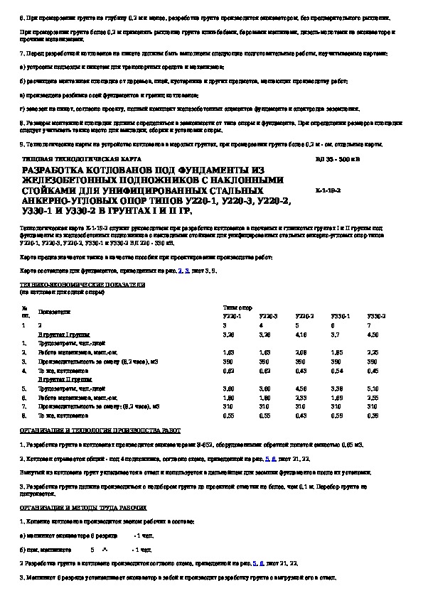Типовая технологическая карта. Разработка котлованов под фундаменты из железобетонных подножников с наклонными стойками для уни