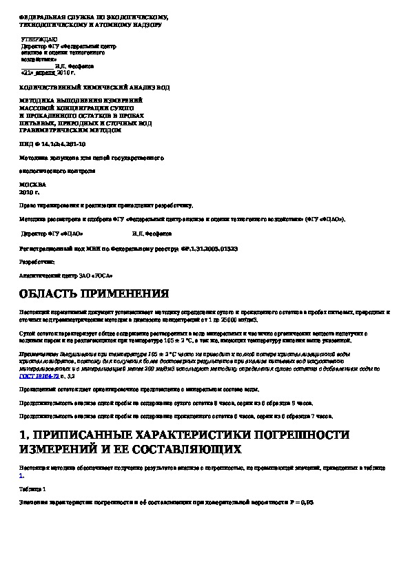 Наша цель состоит в том, чтобы предоставить вам быстрый доступ к содержанию документа Количественный химический анализ вод. Методика выполнения измерений массовой концентрации сухого и прокаленного остатков в проб.