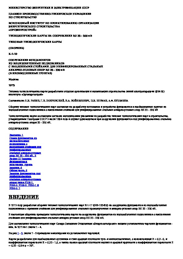 Наша цель состоит в том, чтобы предоставить вам быстрый доступ к содержанию документа Типовая технологическая карта. Засыпка фундаментов под унифицированные стальные анкерно-угловые опоры типов У220-1, У220-2, У220-3, У330-1 и.