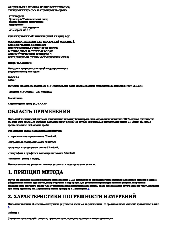 • Просмотр в полноэкранном режиме - легко просмотреть документ Количественный химический анализ вод. Методика выполнения измерений массовой концентрации анионных поверхностно-активных вещес (без загрузки его на свой компьютер).