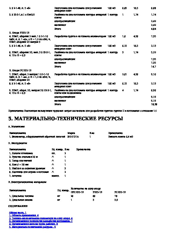 Типовая технологическая карта. Разработка котлованов для унифицированных железобетонных опор ВЛ 35 кВ с вибрированными стойками д