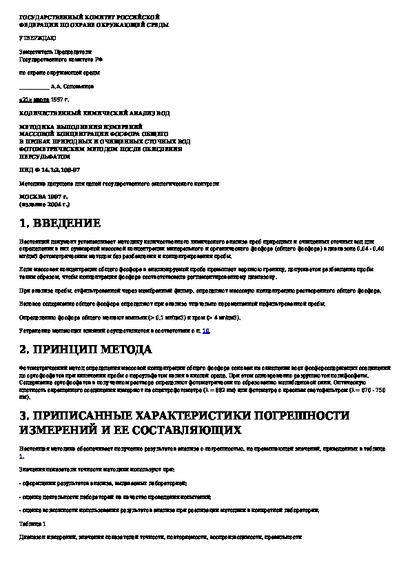 Наша цель состоит в том, чтобы предоставить вам быстрый доступ к содержанию документа Количественный химический анализ вод. Методика выполнения измерений массовой концентрации фосфора общего в пробах природных и оч.