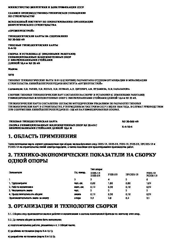 Наша цель состоит в том, чтобы предоставить вам быстрый доступ к содержанию документа Типовая технологическая карта. Сборка унифицированных железобетонных опор ВЛ 35 кВ с вибрированными стойками длиной 16,4 м.