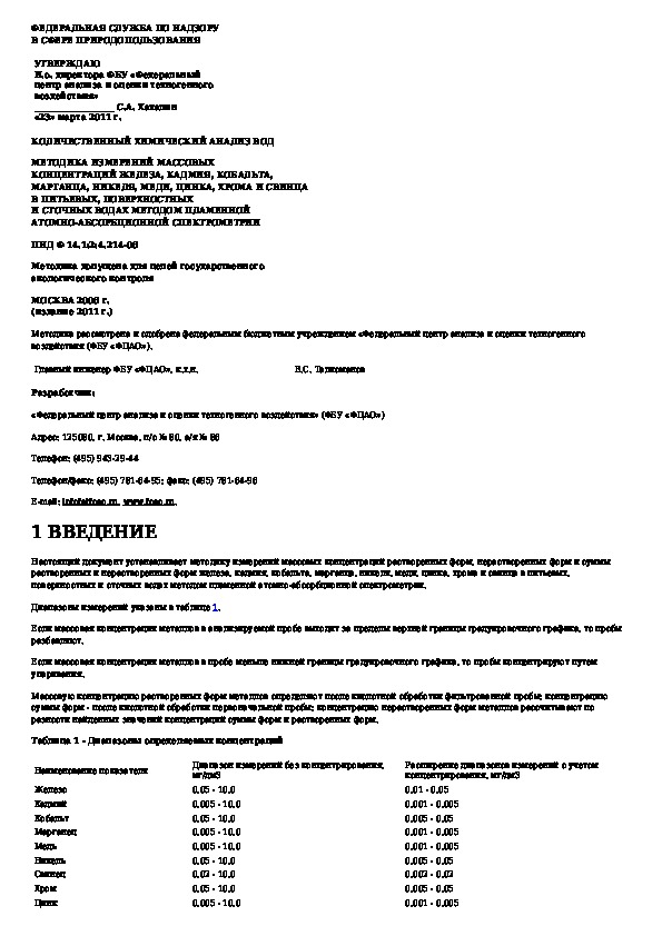 Наша цель состоит в том, чтобы предоставить вам быстрый доступ к содержанию документа Количественный химический анализ вод. Методика выполнения измерений массовой концентрации железа, кадмия, кобальта, марганца, ник.
