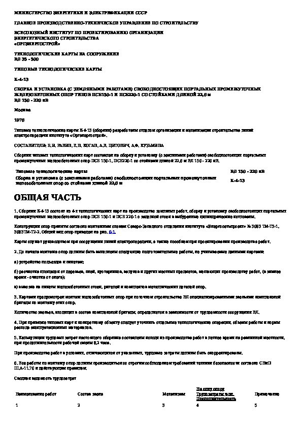 Наша цель состоит в том, чтобы предоставить вам быстрый доступ к содержанию документа Типовая технологическая карта. Сборка и установка (с земляными работами) свободностоящих портальных промежуточных железобетонны.
