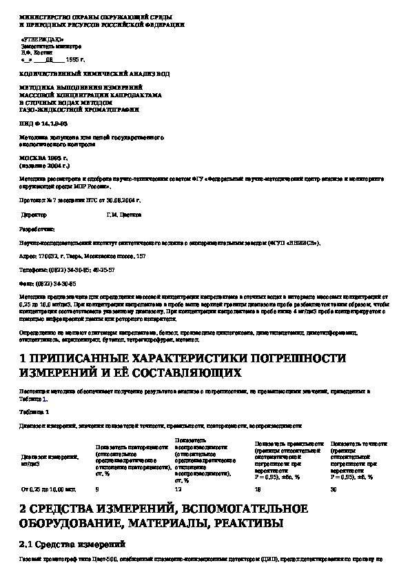 • Просмотр в полноэкранном режиме - легко просмотреть документ Методика выполнения измерений массовой концентрации капролактама в сточных водах методом газо-жидкостной хроматографии (без загрузки его на свой компьютер).