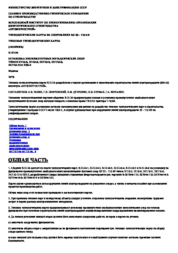 Наша цель состоит в том, чтобы предоставить вам быстрый доступ к содержанию документа Типовая технологическая карта. Установка промежуточных свободностоящих металлических опор типа ПС110-5 на ВЛ 110 кВ.