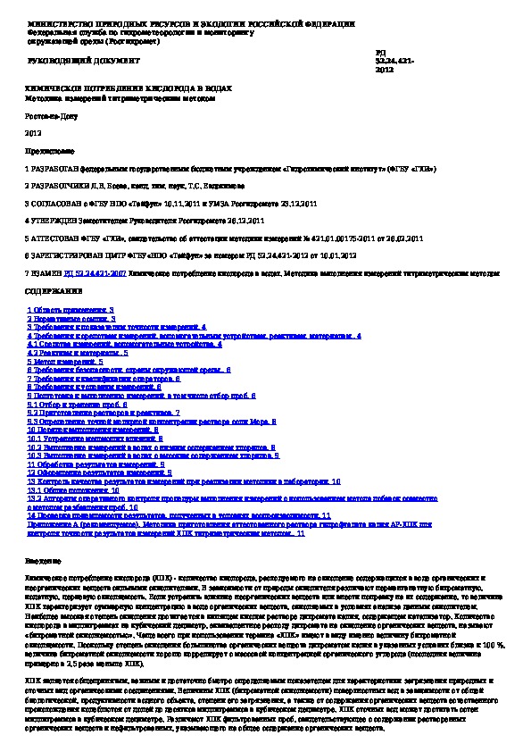 Наша цель состоит в том, чтобы предоставить вам быстрый доступ к содержанию документа Химическое потребление кислорода в водах. Методика измерений титриметрическим методом.