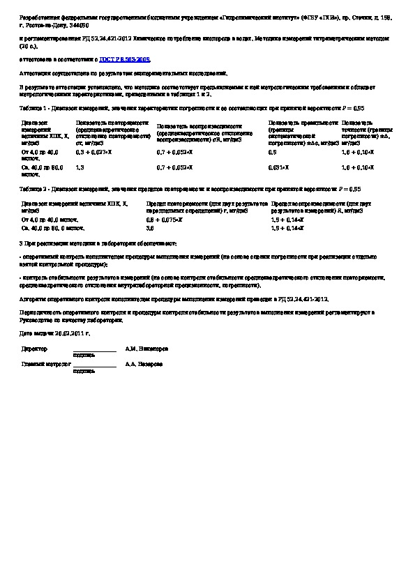 • Загрузка на компьютер - Вы можете также скачать Химическое потребление кислорода в водах. Методика измерений титриметрическим методом на свой компьютер и сохранить его в файлах.