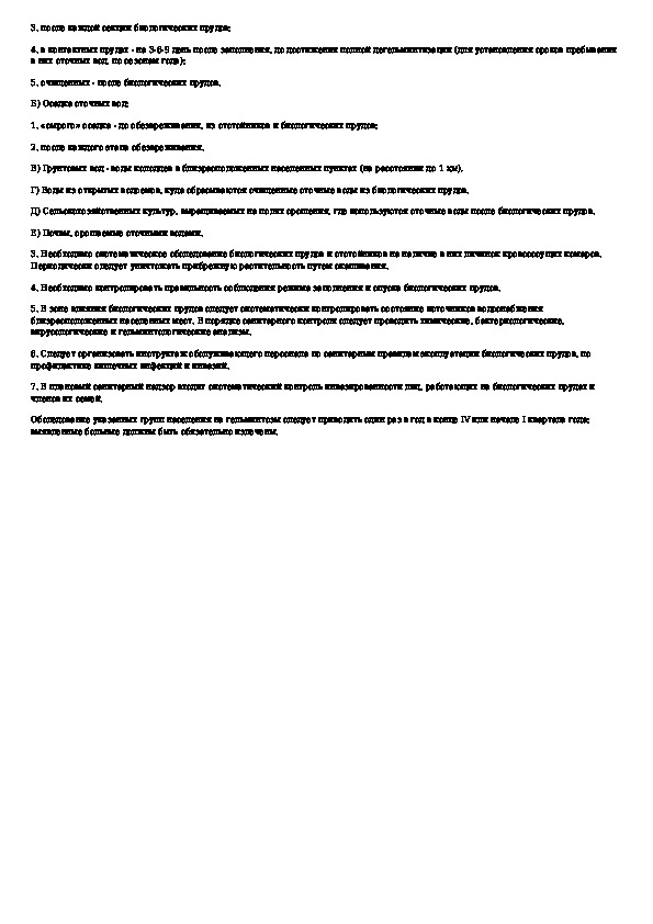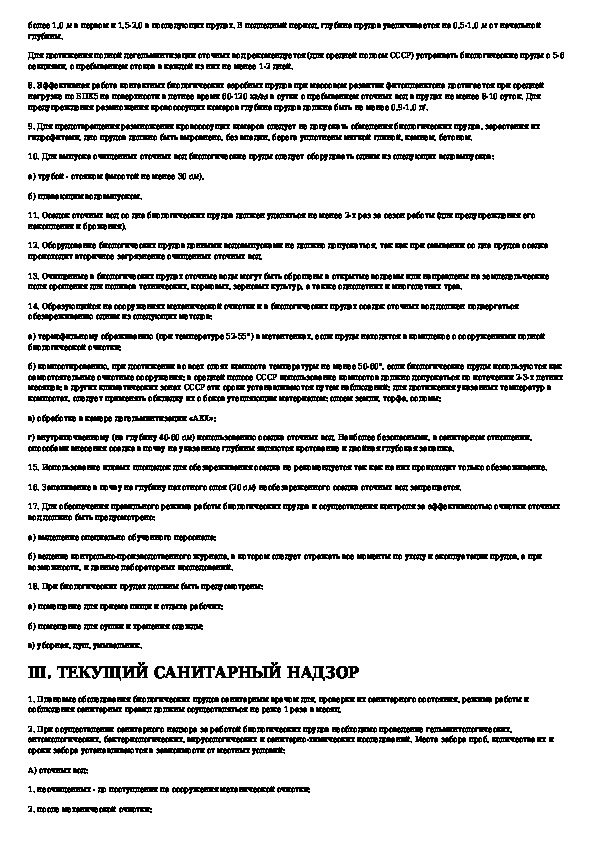 Методические указания по проведению санитарного надзора за работой биологических прудов