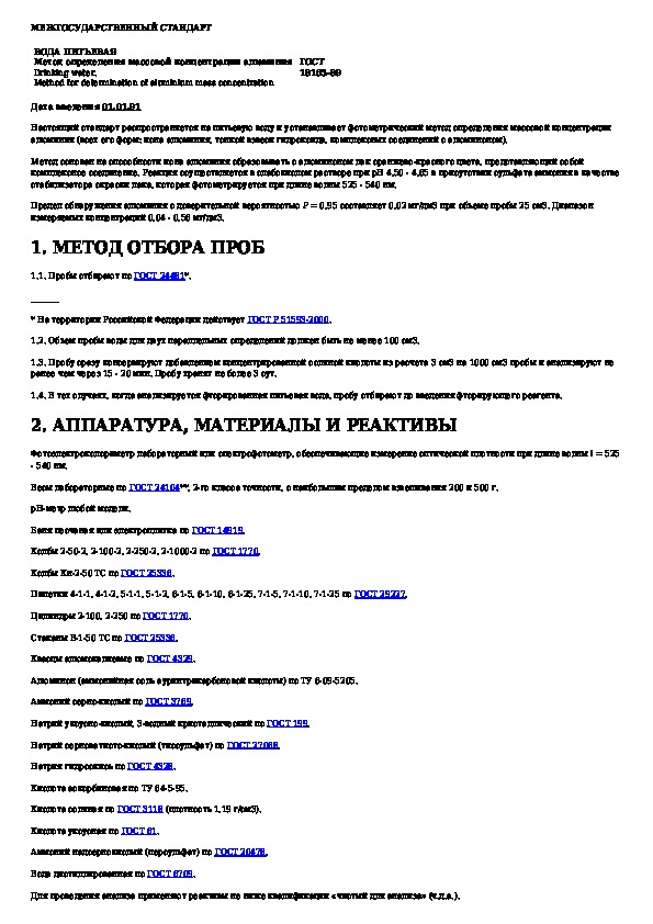 Наша цель состоит в том, чтобы предоставить вам быстрый доступ к содержанию документа Вода питьевая. Метод определения массовой концентрации алюминия.