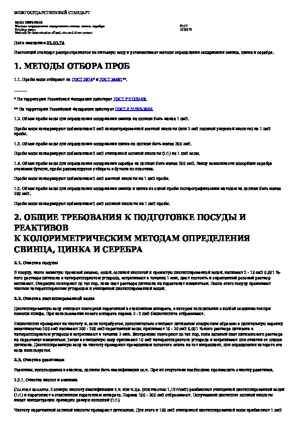 ГОСТ 18293-72: Вода питьевая. Методы определения содержания свинца, цинка, серебра