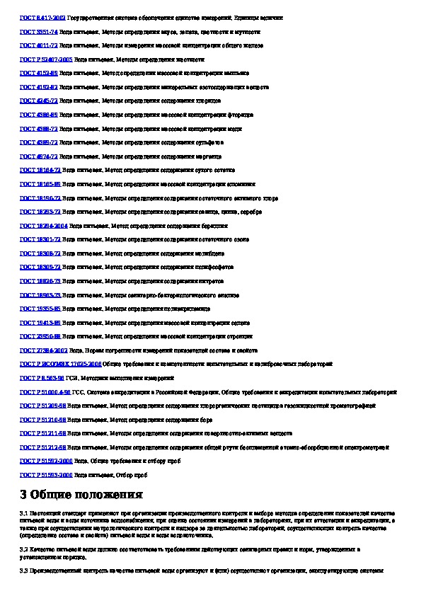Вода питьевая. Общие требования к организации и методам контроля качества