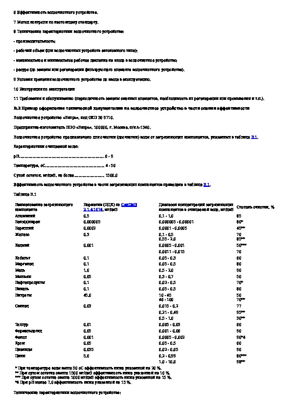 Устройства водоочистные. Общие требования к эффективности и методы ее определения