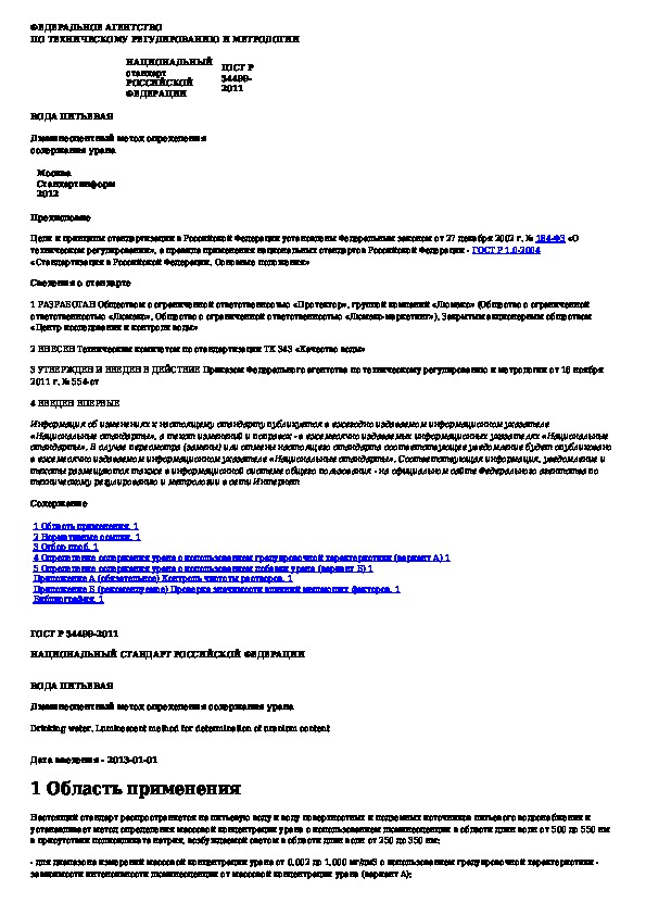 ГОСТ Р 54499-2011: Вода питьевая. Люминесцентный метод определения содержания урана