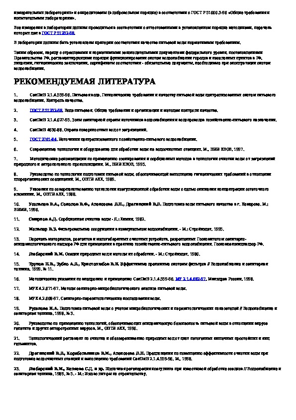 • Загрузка на компьютер - Вы можете также скачать Методические рекомендации по обеспечению выполнения требований санитарных правил и норм СанПиН 2.1.4.559-96 "Питьевая вода. Гигиеничес на свой компьютер и сохранить его в файлах.