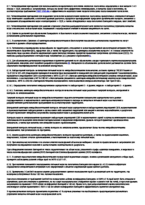 МУ 2.1.4.682-97: Методические указания по внедрению и применению Санитарных правил и норм СанПиН 2.1.4.559-96 "Питьевая вода. Гигиенические требования к
