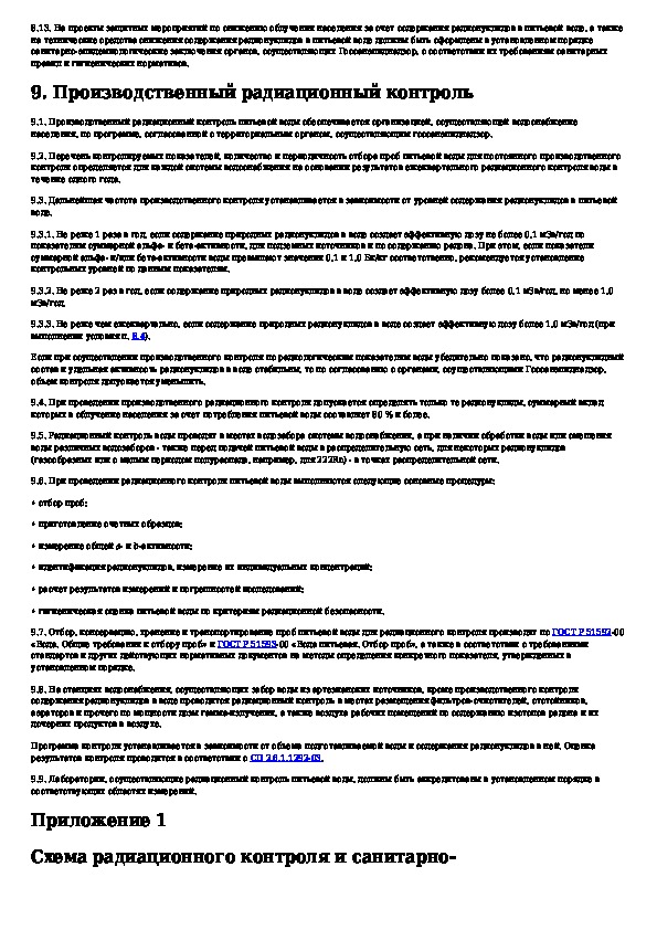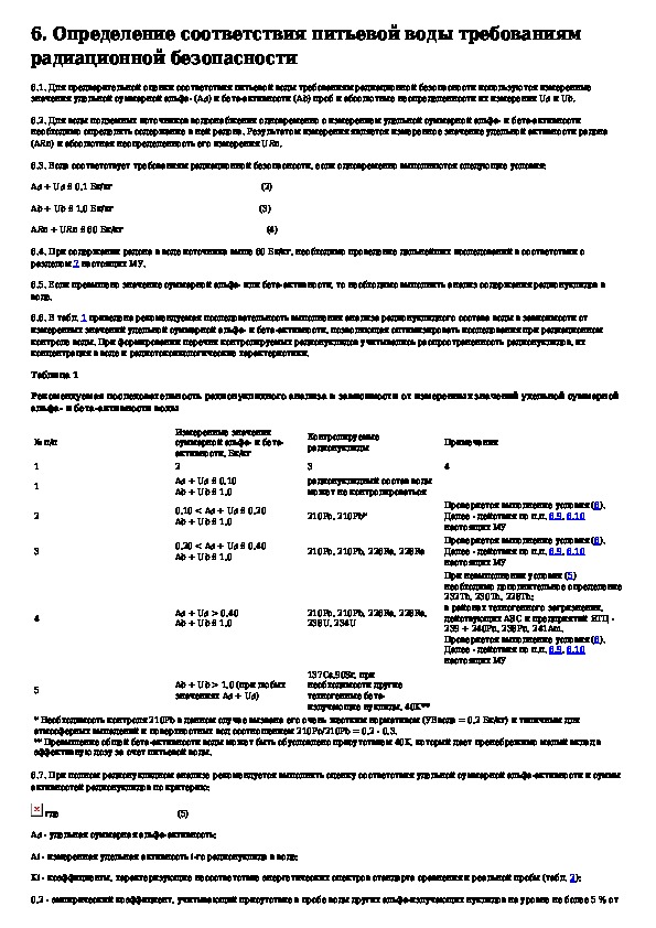 Радиационный контроль и гигиеническая оценка источников питьевого водоснабжения и питьевой воды по показателям радиационной без