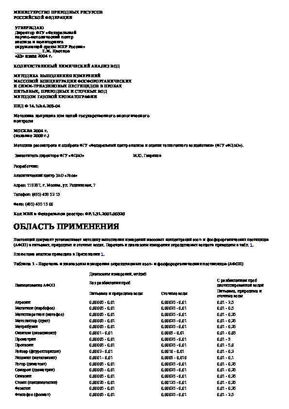 ПНД Ф 14.1:2:4.205-04: Количественный химический анализ вод. Методика выполнения измерений массовой концентрации фосфорорганических и симм-триазиновы