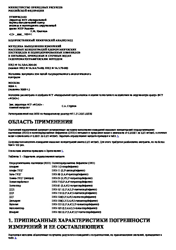 Наша цель состоит в том, чтобы предоставить вам быстрый доступ к содержанию документа Методика выполнения измерений массовых концентраций хлорорганических пестицидов и полихлорированных бифенилов в питьевых, прир.