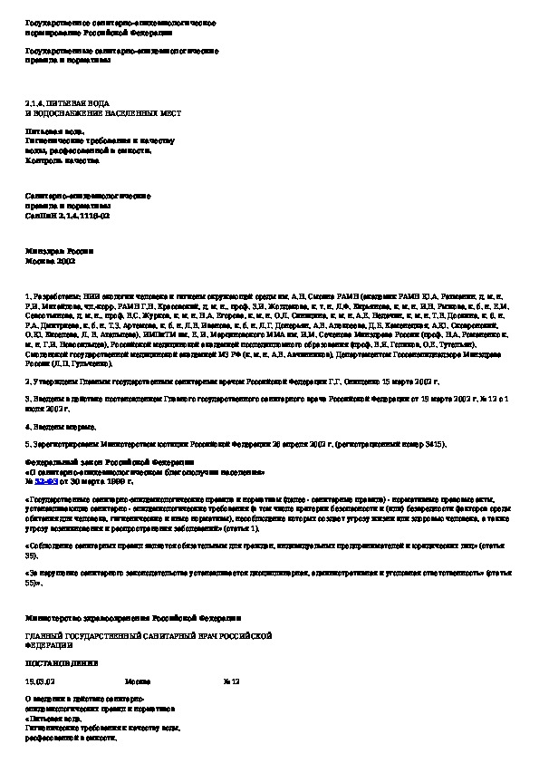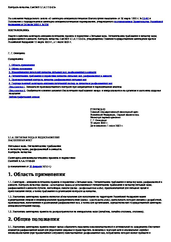 Обозначение: СанПиН 2.1.4.1116-02