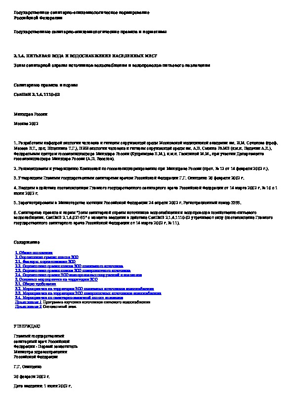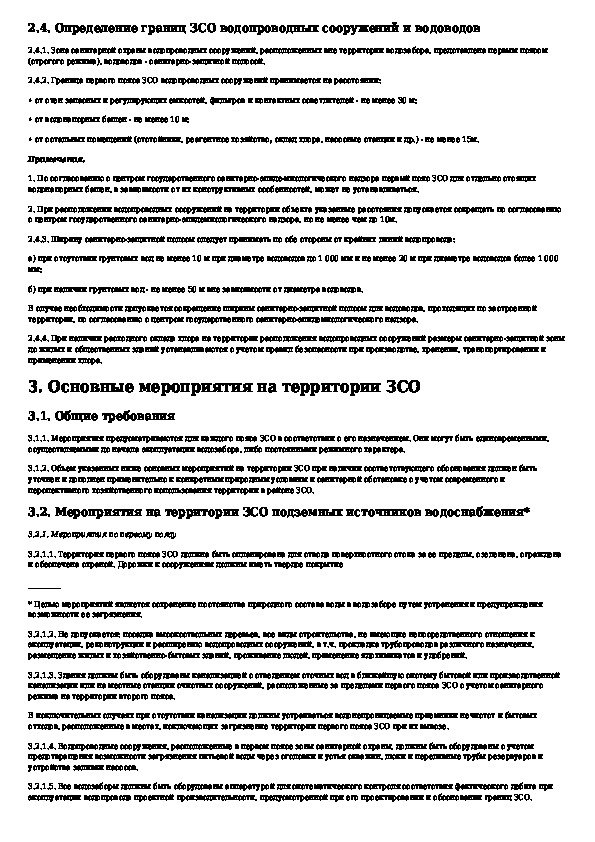 СанПиН 2.1.4.1110-02: Зоны санитарной охраны источников водоснабжения и водопроводов питьевого назначения