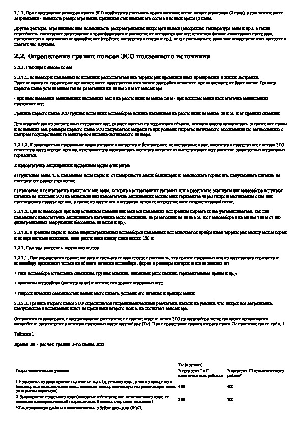 Зоны санитарной охраны источников водоснабжения и водопроводов питьевого назначения