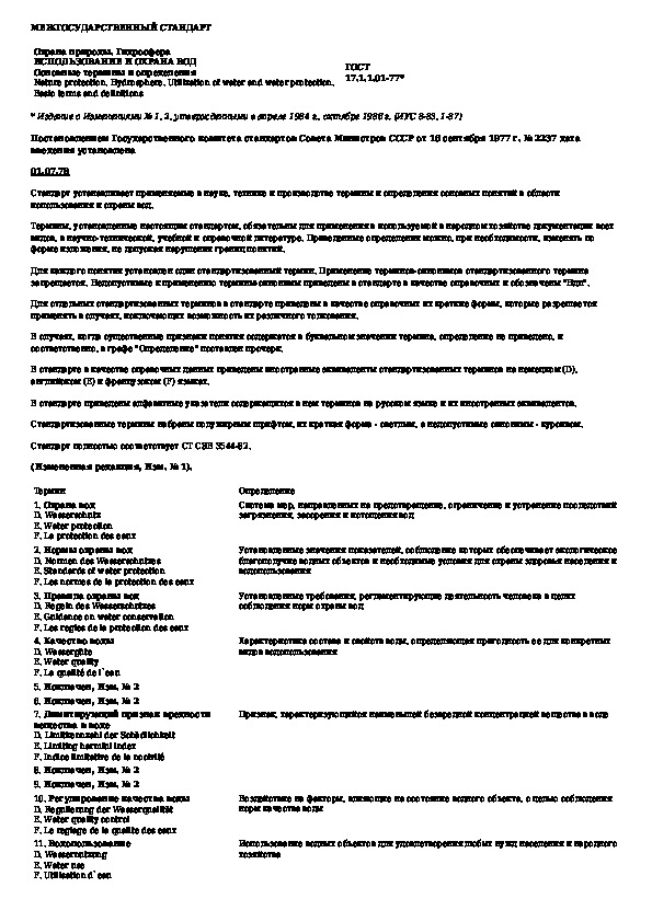 ГОСТ 17.1.1.01-77: Охрана природы. Гидросфера. Использование и охрана вод. Основные термины и определения