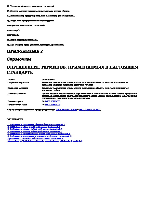 Наша цель состоит в том, чтобы предоставить вам быстрый доступ к содержанию документа Охрана природы. Гидросфера. Общие требования к отбору проб донных отложений водных объектов для анализа на загрязненность.