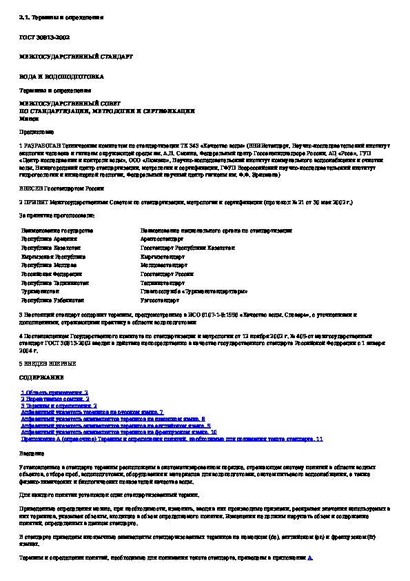ГОСТ 30813-2002: Вода и водоподготовка. Термины и определения