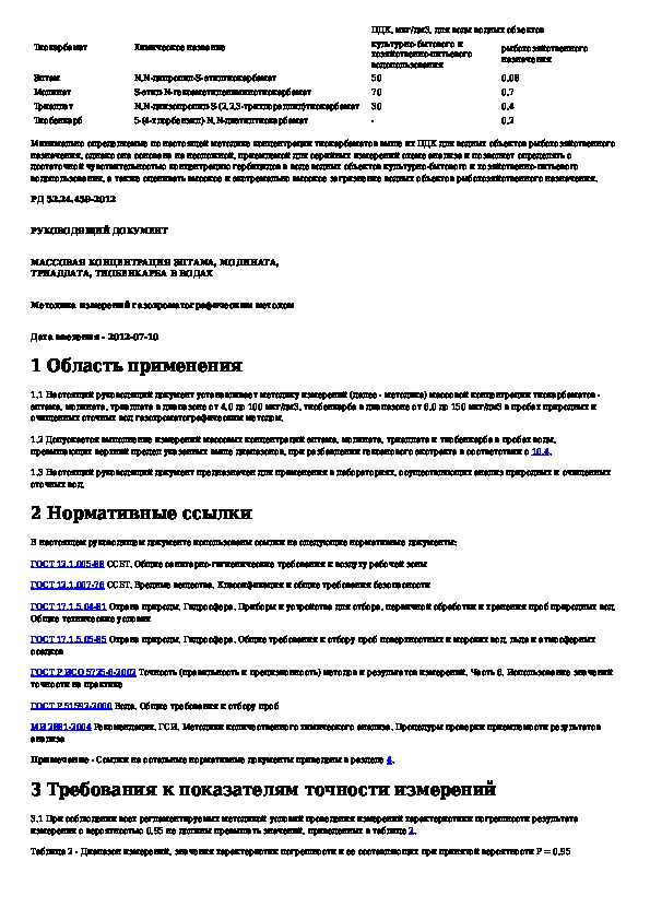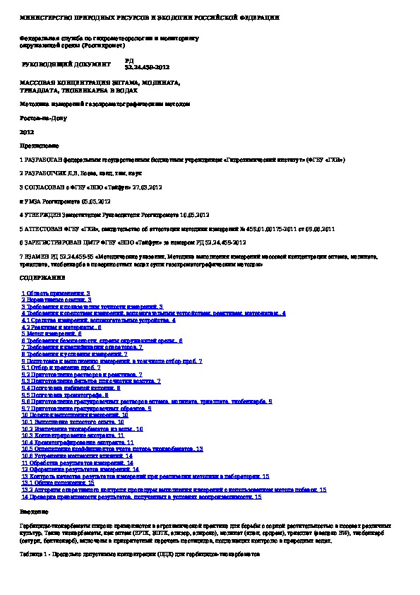 РД 52.24.459-2012: Массовая концентрация эптама, молината, триаллата, тиобенкарба в водах. Методика измерений газохроматографическим методом