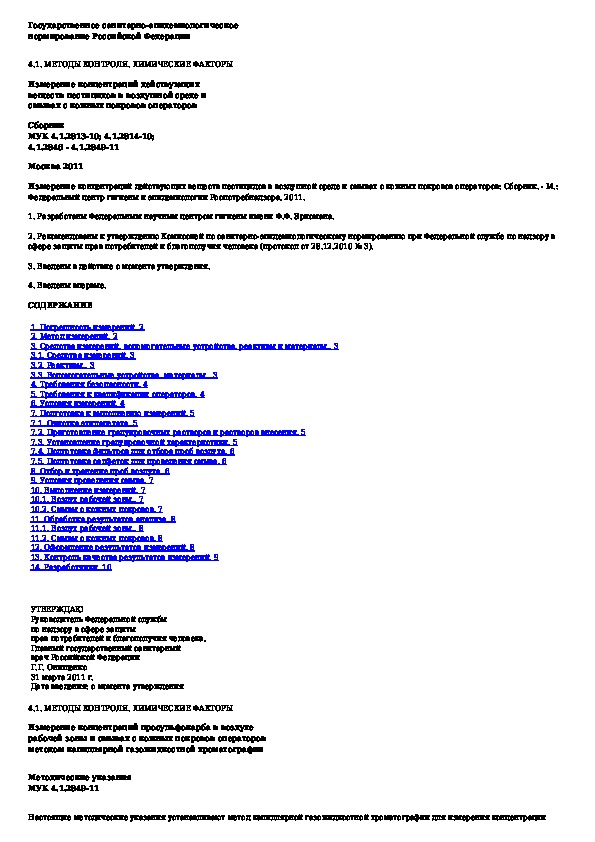 Обозначение: МУК 4.1.2849-11