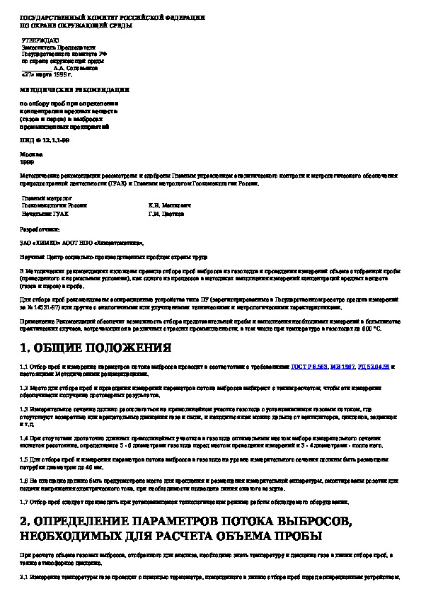 • Просмотр в полноэкранном режиме - легко просмотреть документ Методические рекомендации по отбору проб при определении концентраций вредных веществ (газов и паров) в выбросах промышленных пре (без загрузки его на свой компьютер).