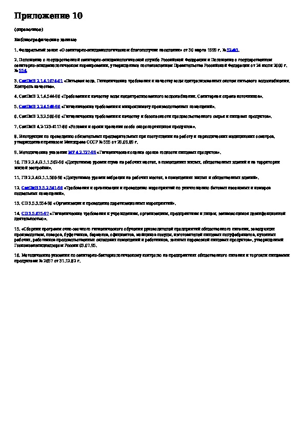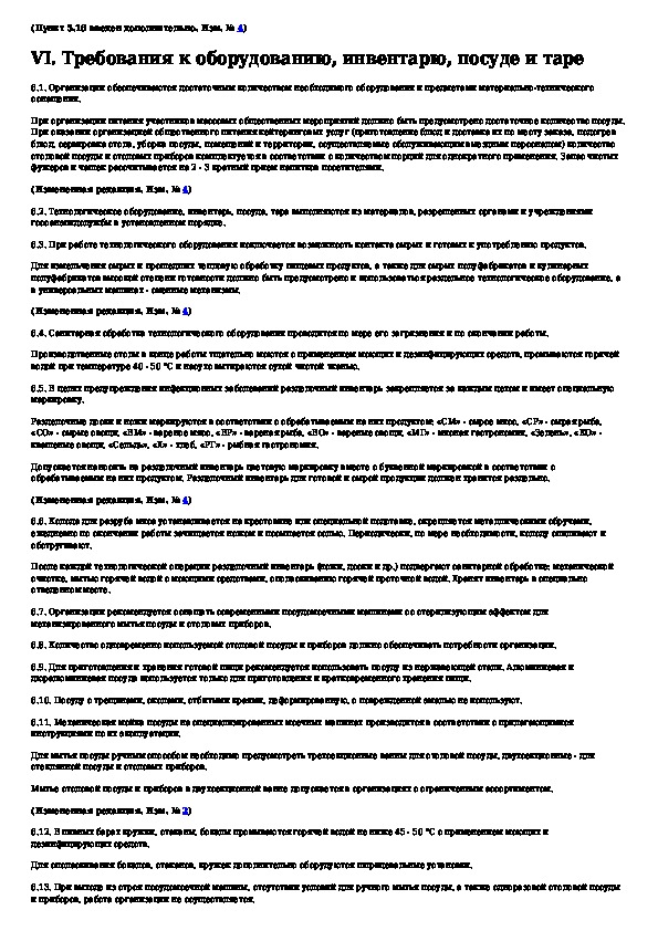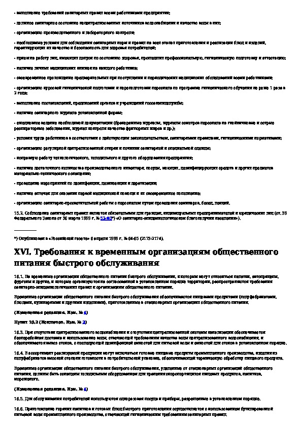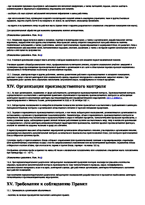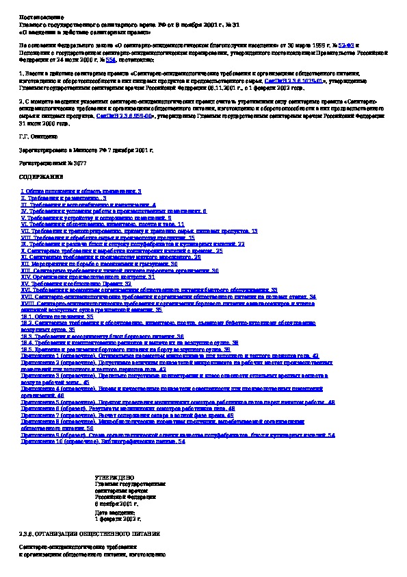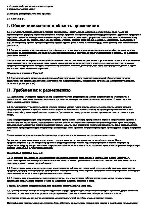 СанПиН 2.3.6.1079-01: Санитарно-эпидемиологические требования к организациям общественного питания, изготовлению и оборотоспособности в них пищевых п