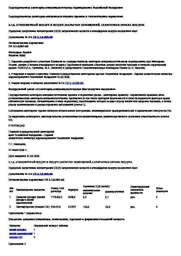 • Загрузка на компьютер - Вы можете также скачать Предельно допустимые концентрации (ПДК) загрязняющих веществ в атмосферном воздухе населенных мест. Дополнение N 3 к ГН 2.1.6.695-98 на свой компьютер и сохранить его в файлах.