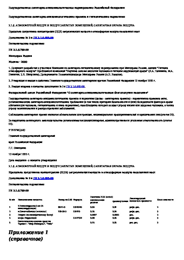 • Просмотр в полноэкранном режиме - легко просмотреть документ Предельно допустимые концентрации (ПДК) загрязняющих веществ в атмосферном воздухе населенных мест. Дополнение N 2 к ГН 2.1.6.695-98 (без загрузки его на свой компьютер).
