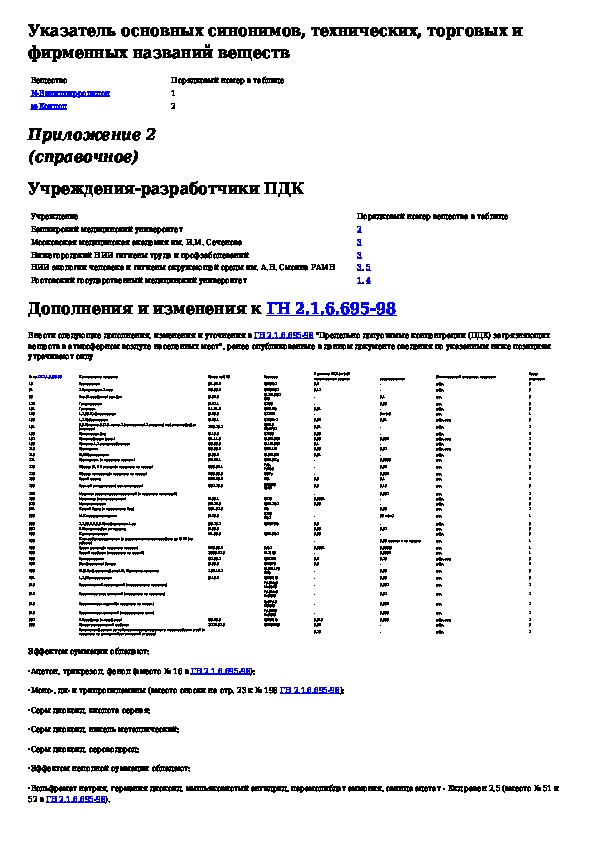 Наша цель состоит в том, чтобы предоставить вам быстрый доступ к содержанию документа Предельно допустимые концентрации (ПДК) загрязняющих веществ в атмосферном воздухе населенных мест. Дополнение N 2 к ГН 2.1.6.695-98.