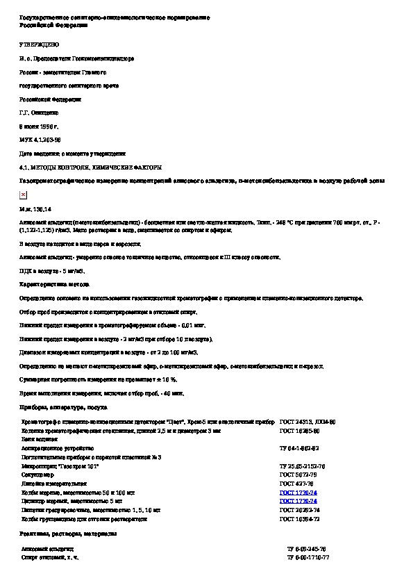Наша цель состоит в том, чтобы предоставить вам быстрый доступ к содержанию документа Газохроматографическое измерение концентраций анисового альдегида, п-метоксибензальдегида в воздухе рабочей зоны.