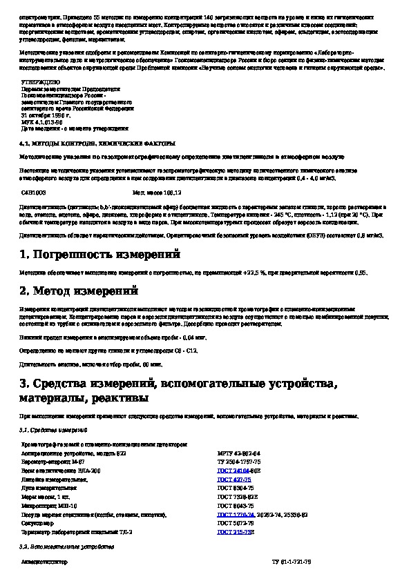 МУК 4.1.613-96: Методические указания по газохроматографическому определению диэтиленгликоля в атмосферном воздухе