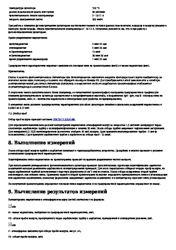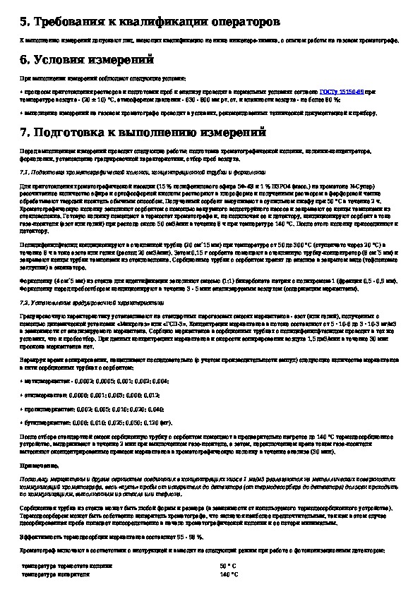 Методические указания по газохроматографическому определению меркаптанов (метил-, этил-, пропил-, бутил-меркаптанов) в атмосферном